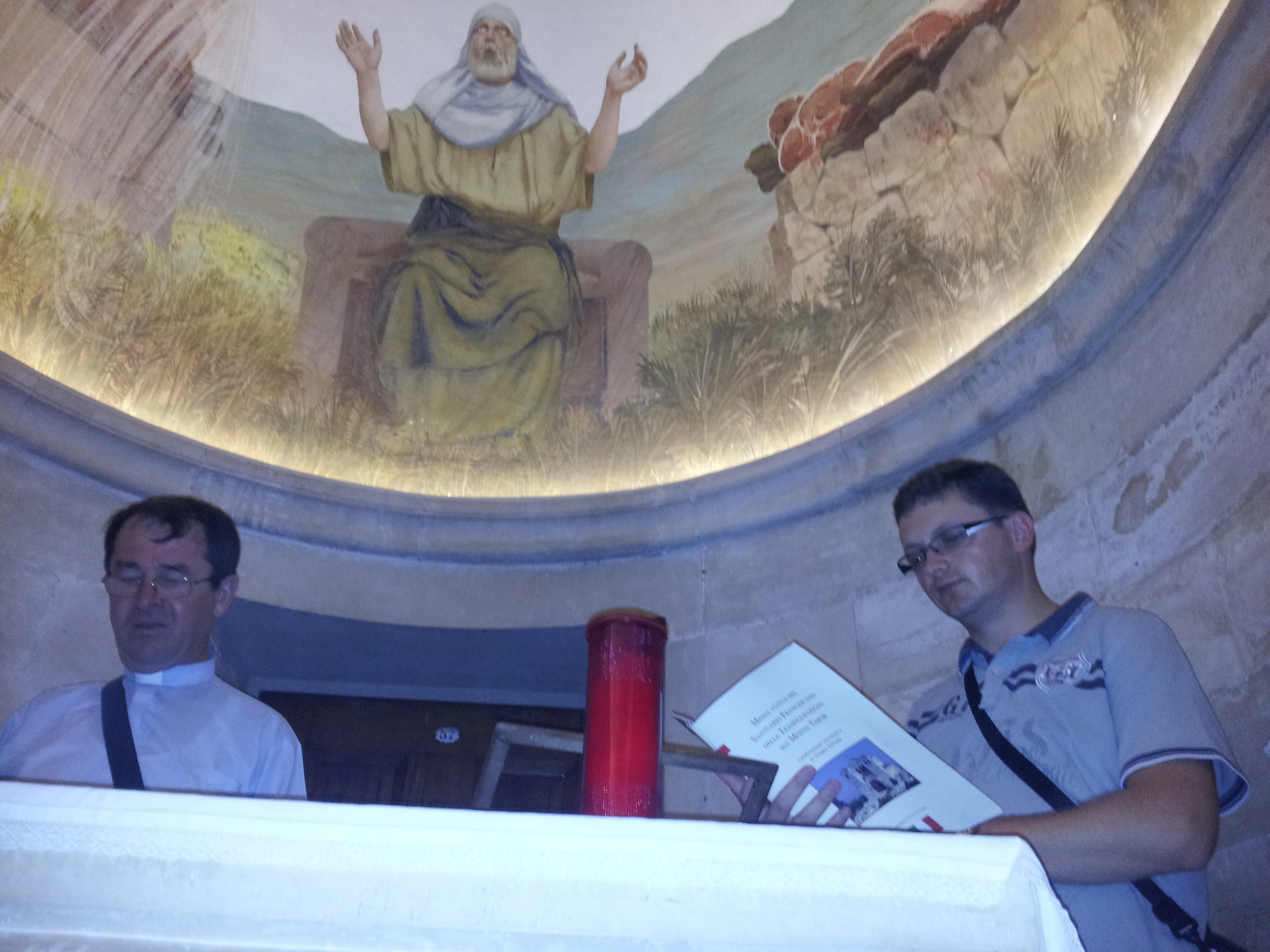 După prezentarea şi explicaţiile primite din partea părintelui Iosif, ni s-a oferit un timp liber: rugăciuni, meditaţii, fotografii. Într-un colţ al bisericii este loc pentru adoraţie euharistică. Stând în faţa tabernacolului simţi că eşti ca ucenicii: cel mai aproape de Isus, de Cristos care are un alt chip, dar la fel de luminos: chipul euharistic. Evanghelia şi rugăciunea, schimbarea la faţă şi tot peisajul mirific au făcut rugăciunea mea mult mai frumoasă. Mi s-a părut foarte potrivit să recit din breviar (cred că era cumva şi la rând!) o parte din psalmul 18:
