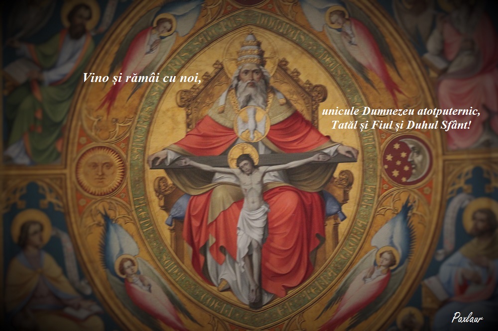 Dumnezeule, Părinte ceresc, tu l-ai trimis în lume pe Fiul tău, Cuvântul adevărului, și pe Duhul tău, izvorul sfințeniei, pentru a descoperi oamenilor misterul minunat al vieții dumnezeiești. Dă-ne, te rugăm, harul ca, mărturisind adevărata credință, să recunoaștem slava veșnicei Treimi și să adorăm unitatea celor trei persoane în mărirea puterii sale.