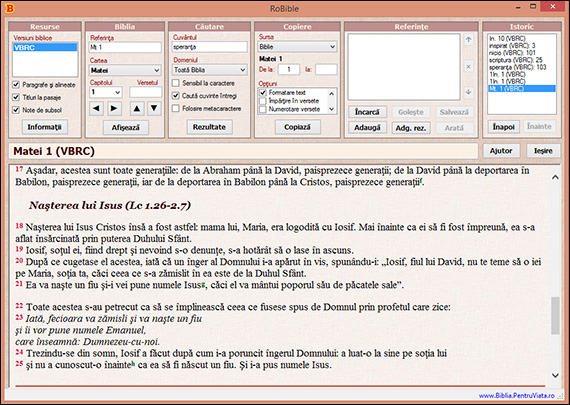 Aplicaţia se numeşte RoBible: prezintă atât textul traducerii, cât şi notele de subsol pentru înţelegerea textului. Precizez că varianta textului NU este cea prezentă în forma tipărită a Bibliei de la Iaşi, 2013, deci se vor observa diferenţe. În momentul când vom definitiva revizuirea şi corectarea greşelilor inerent strecurate, se va actualiza automat. Aplicaţia va putea fi descărcată gratuit începând cu următoarele zile de pe situl www.bibliacatolica.ro şi va putea fi folosită atât pe calculator, laptop, cât şi pe telefoane mobile, indiferent de sistemul de operare (în momentul descărcării, va trebui aleasă varianta potrivită sistemului de operare a telefonului fiecăruia). Oricum, vor fi prezente pe site şi informaţii referitoare la procedeul de instalare şi utilizare.
