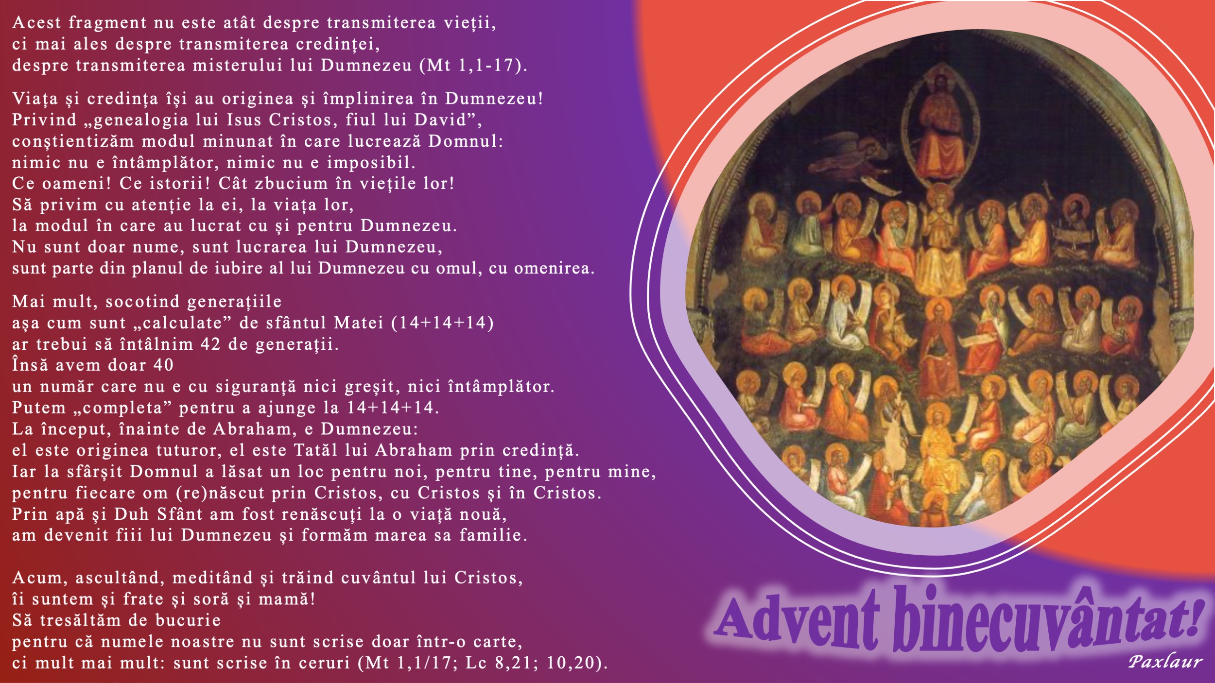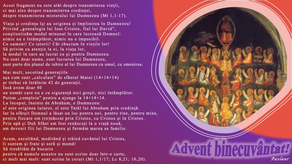 despre transmiterea misterului lui Dumnezeu (Mt 1,1-17).